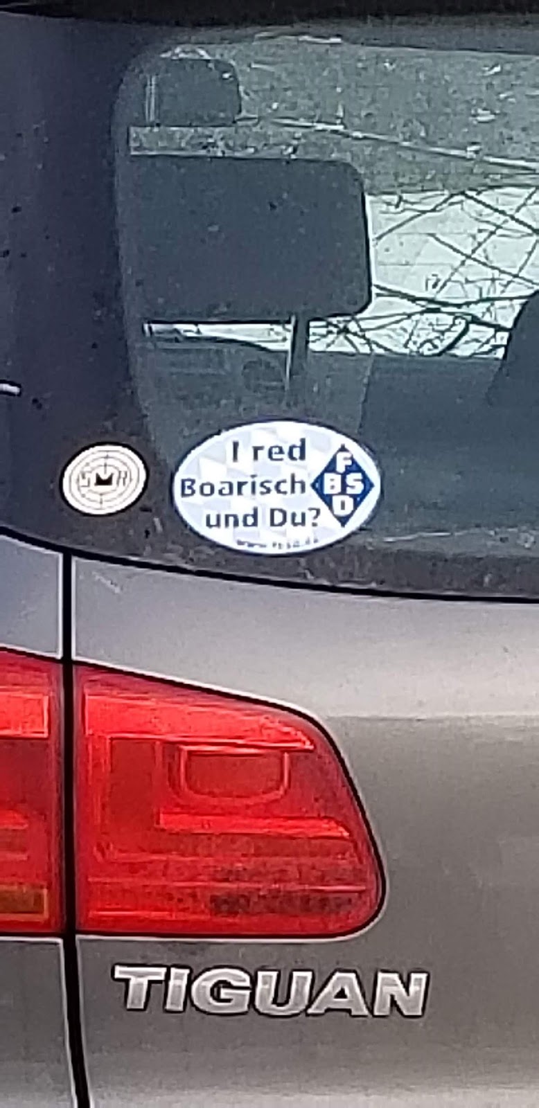 | "I speak Bayerisch and you?" The presenter's bumper sticker! |