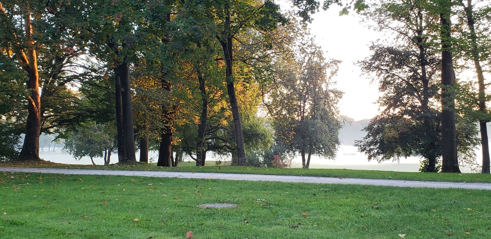 | Stopped on the way to capture the mist over the lawns in the Englischer Garten. |